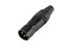 3 pole male cable connector, IP65 and internal waterproof, black plated housing, gold plated contacts