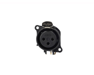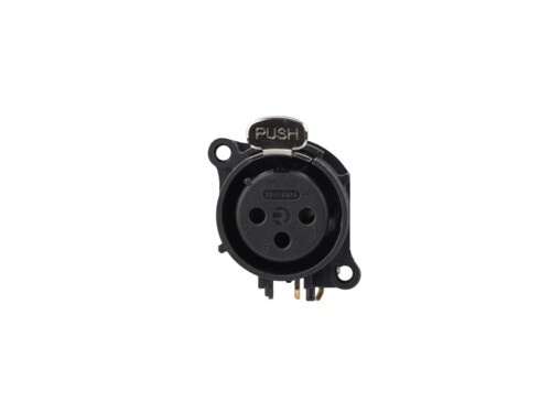 3 pole female XLR receptacle, grounding: mating connector shell to pin1 and front panel, horizontal PCB mount
