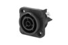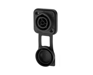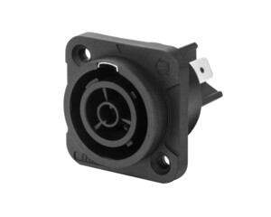 Lockable power outlet chassis connector, with excellent flammability class by using V0 materials.